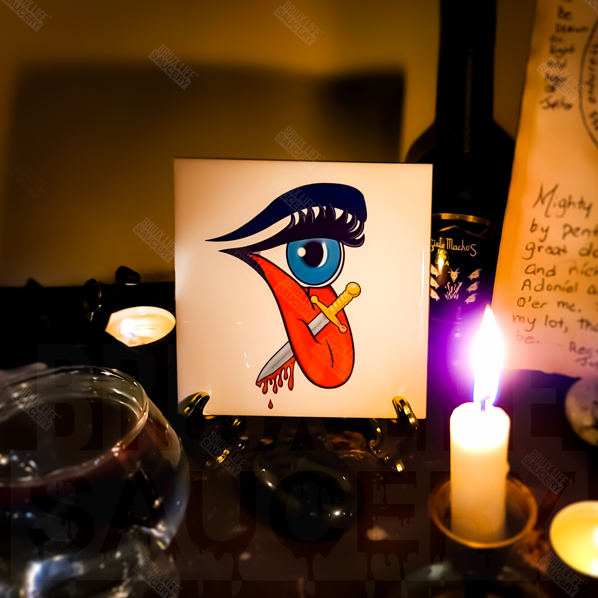 tile can be used as a form of protection. the image can be placed on the altar or it can be placed by the door using the stand that is included. tile can also be used as a candle coaster